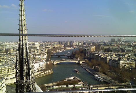 On top of the Notre Dame Cathedral overlooking Paris, France Wednesday April 3, 2013.